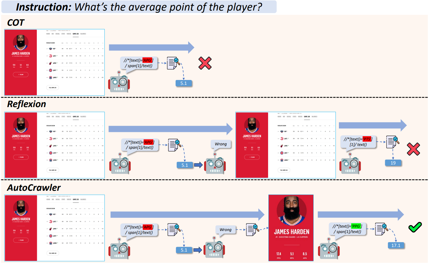 AutoCrawler는 Reflexion과 다르게 반복마다 DOM tree를 정리하여 웹페이지 크기를 줄인다.