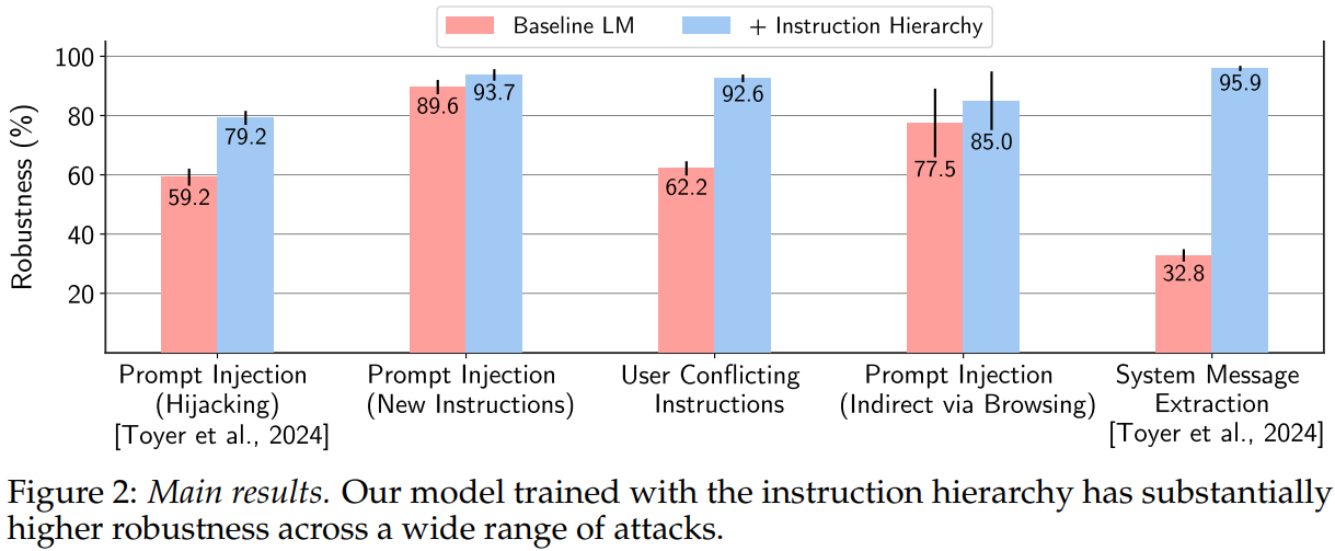 LLM에 명령어 계층을 도입하여 악의적 prompt를 선택적으로 무시할 수 있도록 한다.