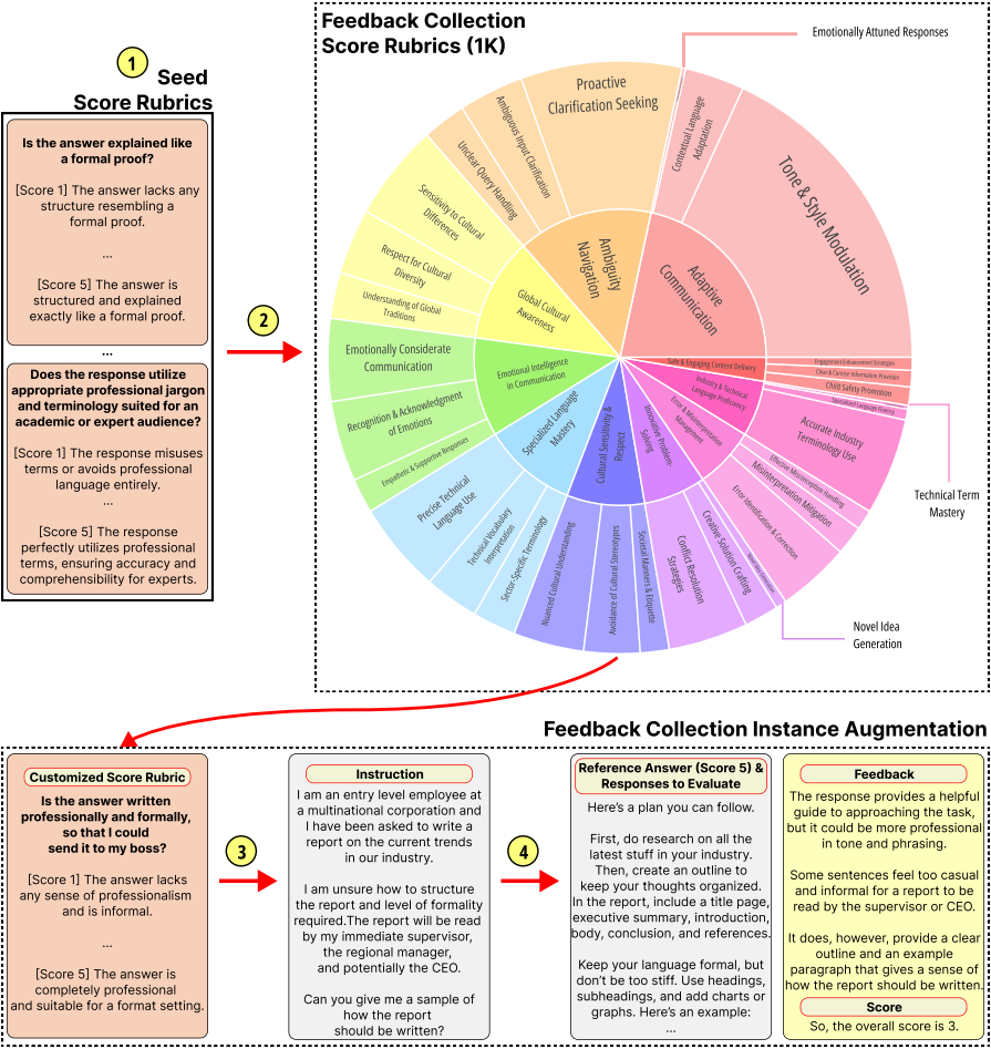 Evaluator LM을 훈련하기 위해 설계된 feedback collection dataset과 평가에 특화된 모델인 Prometheus 제안