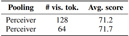 Finding 4. Visual token의 수를 줄이면 컴퓨팅 효율성과 downstream 성능이 향상된다.