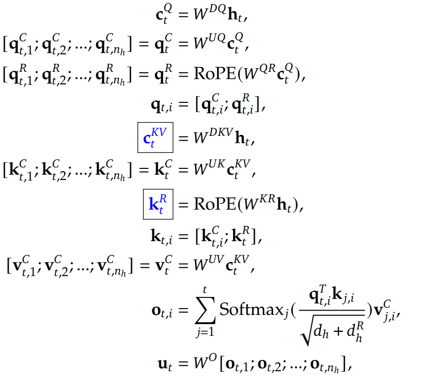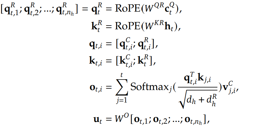 Q, K에 바로 RoPE를 적용하지 않고 별도의 low-rank로 projection 하여 RoPE를 적용 후 연결하는 것으로 해결한다.
