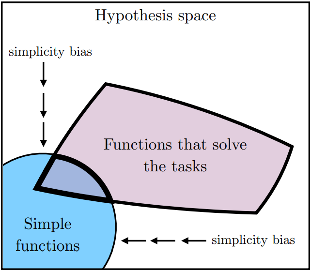 Deep networks는 복잡한 해결책보다 더 단순한 해결책을 찾으려는 편향이 있으며, 따라서 모델은 가능한 해결책 중 이 simple function에 가까운 해결책을 선택하게 된다.
