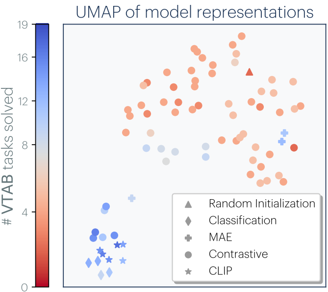 아래 그림을 보면 더 파란색(더 성능 좋음) 모델일수록 비슷한 표현을 가지고 있는 것을 볼 수 있다.