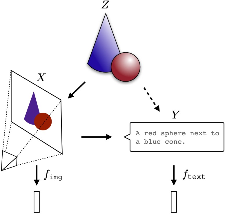 이미지 표현 X, 텍스트 표현 Y는 공통된 현실 Z에 대한 투영이며, 따라서 이들은 하나의 표현으로 수렴될 것이다.