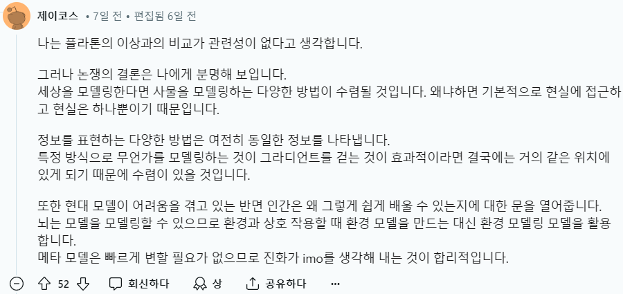 연구진은 그러한 표현을 platonic representation이라 명명하고 이에 대해 논의한다.