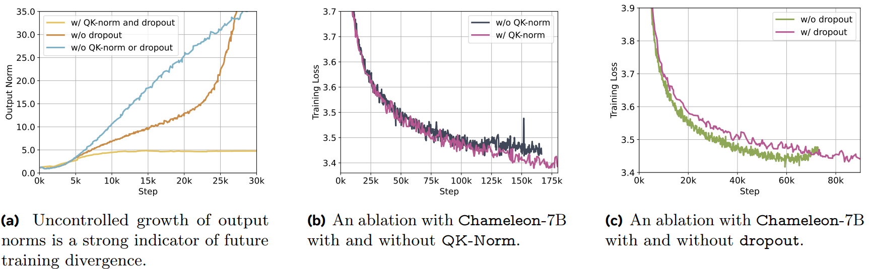 연구진은 이것이 softmax의 translation invariant 특성 (i.e., softmax(z) = softmax(z + c)) 때문에 발생한다고 생각했다. Chameleon은 모든 modal이 가중치를 공유하기 때문에 각 modal이 norm을 점점 높여가며 경쟁하려 한다는 것이다.