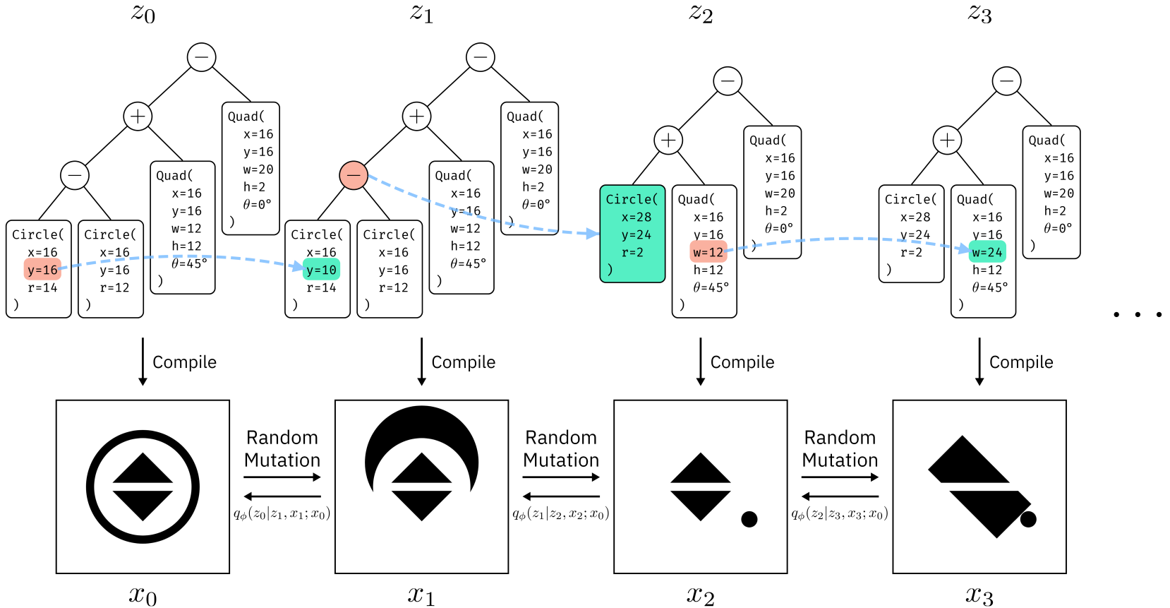 Syntax tree에 순차적으로 추가된 noise를 반전시켜 역 그래픽 작업을 수행할 수 있는 Tree Diffusion 제안