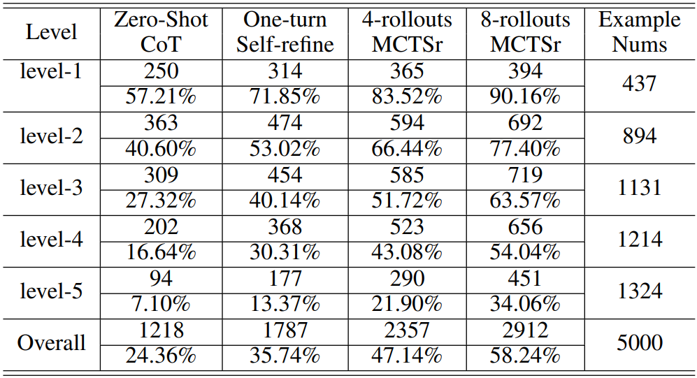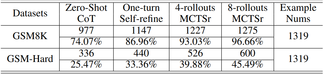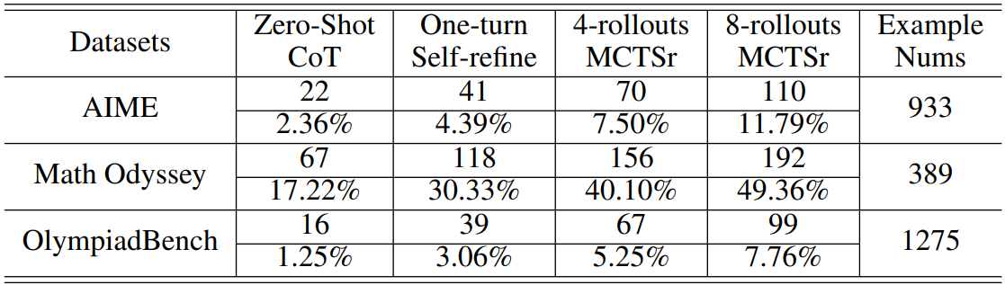 요약: 기존의 MCTS + LLM 방법은 a가 답변의 일부였다면, MCTSr에서 기존 노드는 기존 답변, 확장된 노드는 향상된 답변이다.