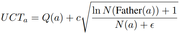 알파고와 비슷한 방법으로 후보 노드 집합에 대한 UCT 업데이트: