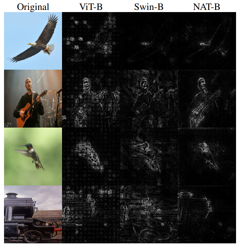 확실히 계층적 attention을 사용하는 두 모델이 패치 단위에 많이 구애받지 않는 것을 알 수 있고 NAT쪽이 조금 더 깨끗하다.