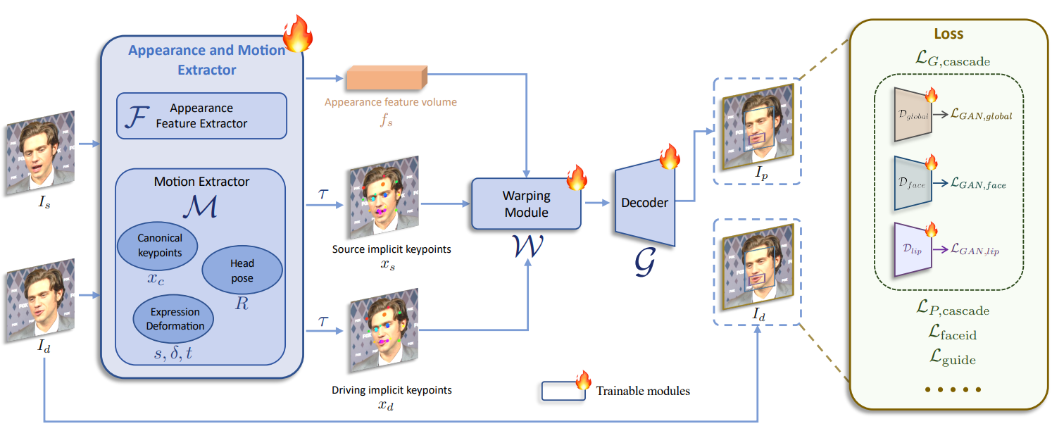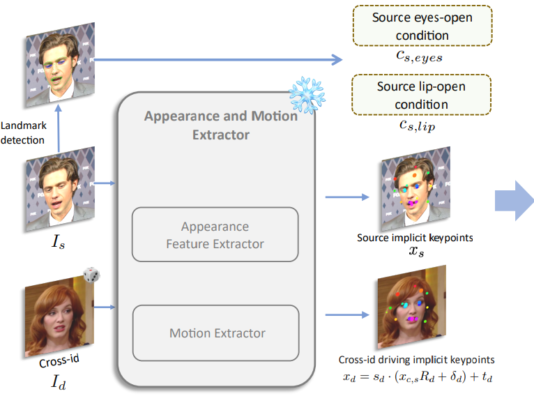Face-vid2vid는 눈 움직임 같은 미세한 표정을 포착하기 어렵다. 따라서 얼굴 랜드마크를 도입하고 눈과 입에서 N개의 랜드마크를 가져와 랜드마크 기반 손실을 최적화한다.