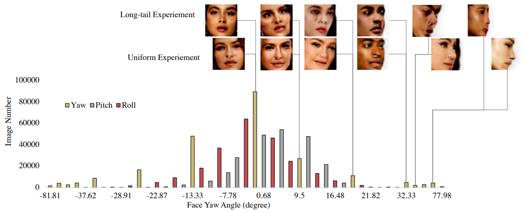 그리고 얼굴 방향 각도와 의복 texture 데이터셋을 SHHQ에서 각각 long-tailed 세트와 균등 세트로 수집한다.