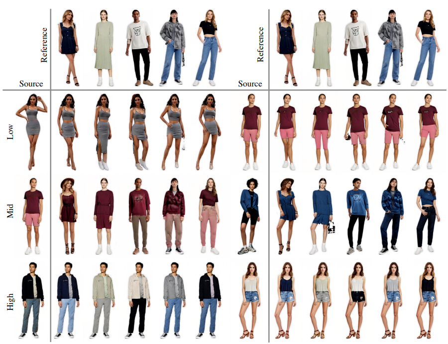 - 균형 잡힌 훈련 세트는 long-tailed counterpart에 비해 희귀한 얼굴 포즈가 있는 생성 품질을 향상시키는 데 도움이 되지만, 단순히 의복 texture 분포의 균형을 맞추는 것만으로는 효과적으로 개선되지 않는다.