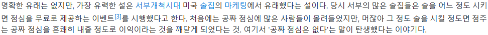 "공짜 점심 같은 것은 없다."라는 문장에서 앞글자만 따서 줄인 것이다.