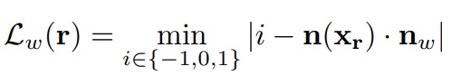 벽 영역의 감독을 위해 학습 가능한 법선 nw를 도입한다. 벽 표면 점의 법선 방향이 nw와 평행하거나 직교하도록 하는 손실을 설계한다.