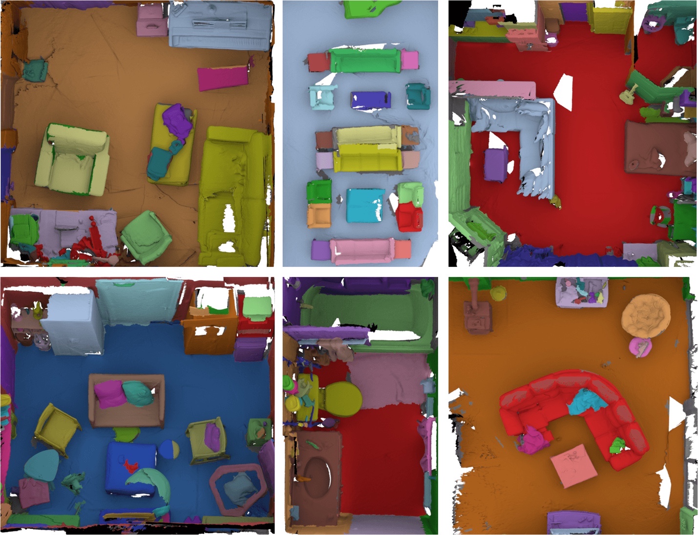 ScanNet의 훈련 세트에서 2D semantic 분할 네트워크를 훈련하고 각각의 데이터셋에서 4개씩 총 8개의 장면에 대해 실험한다. 각 장면에는 1K~5K의 뷰가 있다. 재구성에서는 일률적으로 뷰의 1/10을 샘플링한다.