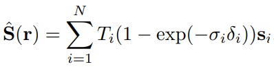 δ는 인접한 두 점 사이의 거리, T는 광선을 따라 누적된 투과율을 의미한다.