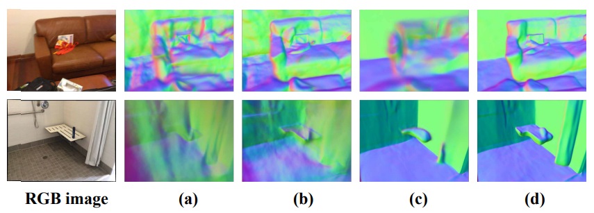 먼저 바닥과 벽의 영역을 얻기 위해 2D semantic 분할 네트워크를 사용한다. 그런 다음 손실 함수를 적용하여 평면 영역의 표면 점들이 동일한 법선 방향을 공유하도록 한다.