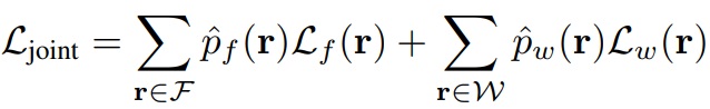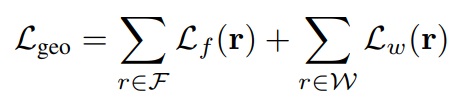 F, W는 semantic 분할에 의해 바닥 및 벽으로 예측되는 이미지 픽셀의 카메라 광선의 집합이다.
