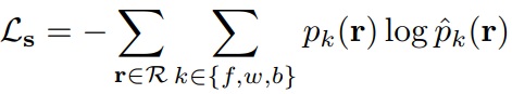 그리고 Ŝ를 softmax 정규화 계층으로 전달하여 바닥, 벽 또는 물체일 확률 p̂f, p̂w, p̂b를 계산한다.