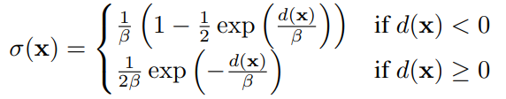 구체적으로, 3D 점 x가 주어지면 geometry 모델은 다음과 같이 정의된 SD d(x)에 매핑한다.