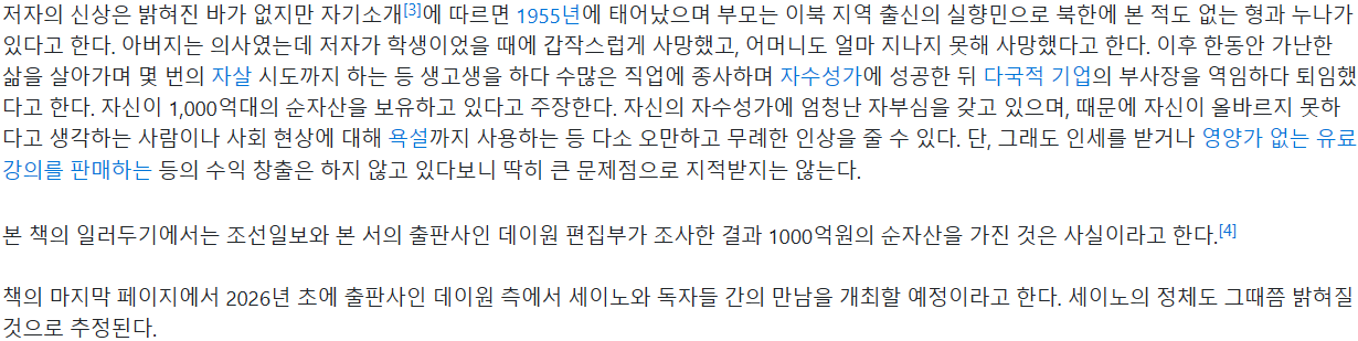 엄청 유명한 책이다. 세이노(SayNo, 한국인이다)라는 사람이 인터넷과 각종 저널에 올린 글들을 모은 책이다.