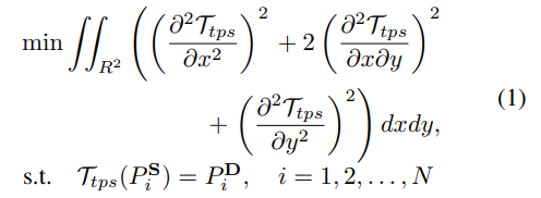 픽셀 p에서 k번째 TPS 변환은 다음과 같이 구해진다.