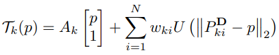 Ak ∈ R2 x 3그리고 wki ∈ R2 x 1은 등식 (1)을 풀어서 얻은 TPS 계수이고,