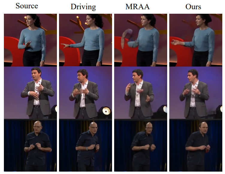 최근의 연구는 사전 지식을 사용하지 않고 비지도 방법을 통해 임의의 개체에 대해 모션 전송을 수행하려고 시도한다. 그러나 소스와 주행(=driving) 이미지의 객체 사이에 큰 포즈 간격이 있을 때의 비지도 방법은 현재 여전히 중요한 과제로 남아 있다. 본 논문에서는 이러한 문제를 극복하기 위해 새로운 end-to-end 비지도 모션 전송 프레임워크를 제안한다.