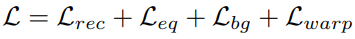 또한 모듈에 대한 보조 손실함수로 bg loss, warp loss를 사용한다.