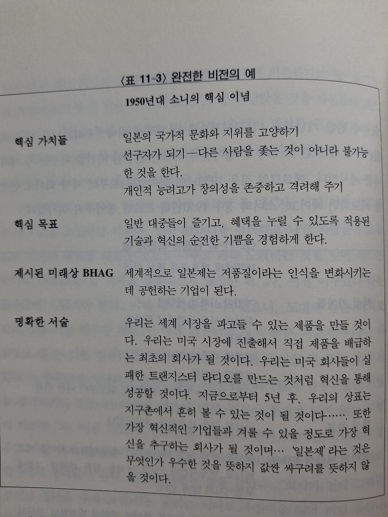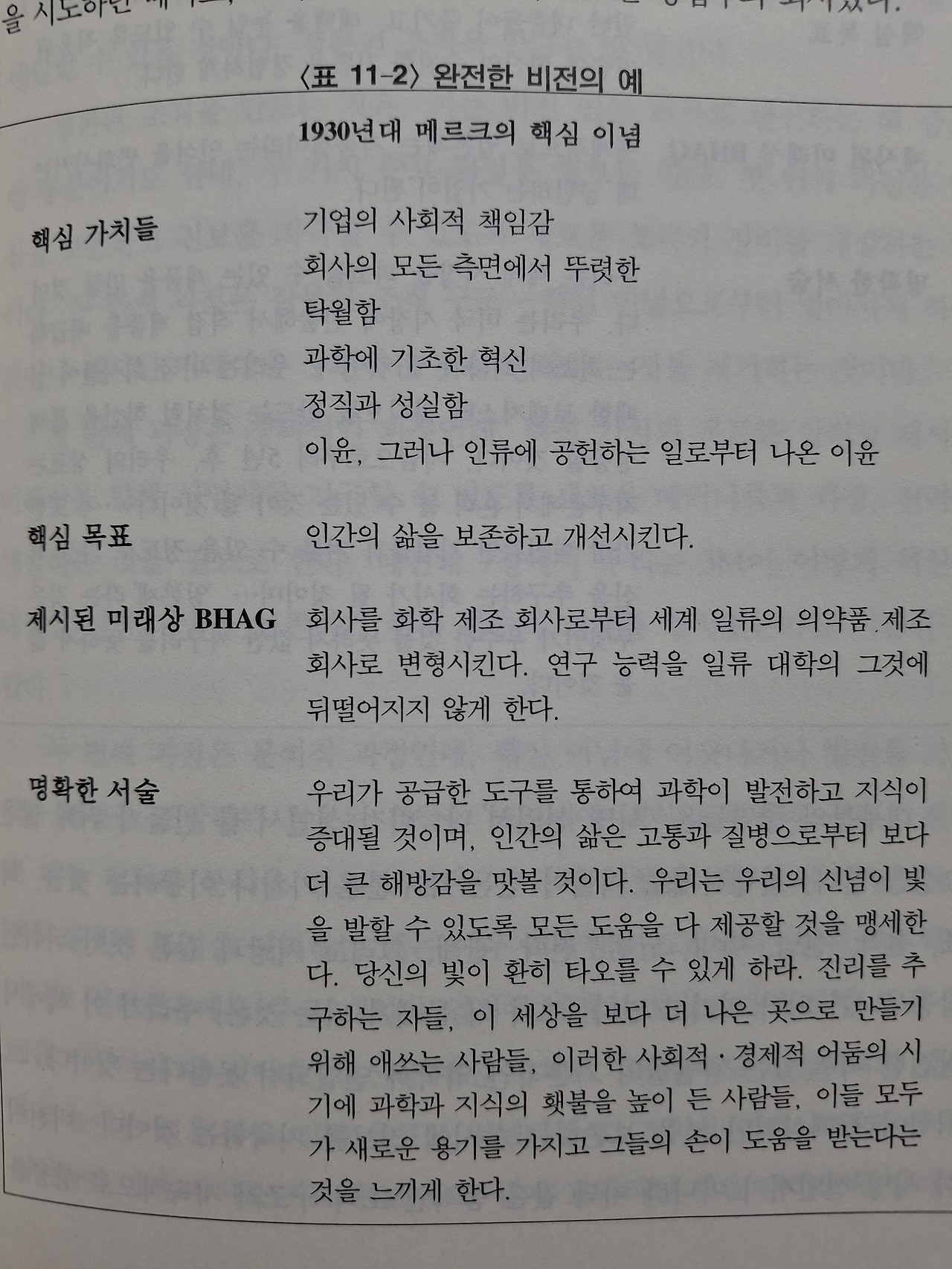 - 비전 기업이 생각하는 중요한 과제는 '어떻게 하면 오늘 우리가 했던 것보다 내일 더 잘할 수 있을까?"이며, 이것이 규범처럼 되어 사고와 행동의 습관을 지배하는 것이다.