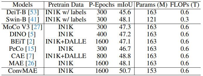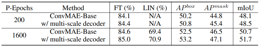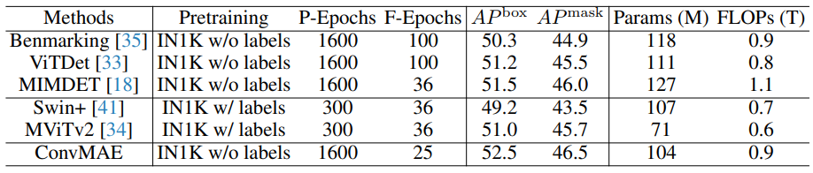 ConvMAE for Object Detection and Semantic Segmentation