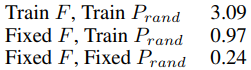 F는 사전 훈련된 feature 네트워크, P는 CCM, CSM이다. F와 P를 모두 고정했을 때 성능이 가장 좋다.