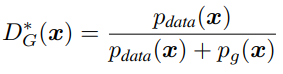 실제 데이터에 대한 확률분포 pdata와 G의 생성 이미지에 대한 확률분포 pg, 그리고 고정된 G가 주어졌을 때 GAN minmax game을 최대화하는 최적의 D는 다음과 같다.