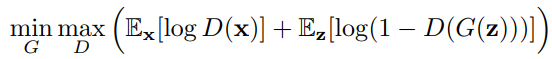 GAN는 주어진 데이터 세트의 분포를 모델링 하는 것을 목표로 한다. 생성기 G는 분포 Pz에서 샘플링된 잠재 벡터 z를 생성된 샘플 이미지 G(z)에 매핑하고 판별기 D는 실제 샘플 x와 생성된 샘플 G(z)를 구별하는 것을 목표로 한다. 일반적인 GAN의 목표는 다음과 같다.