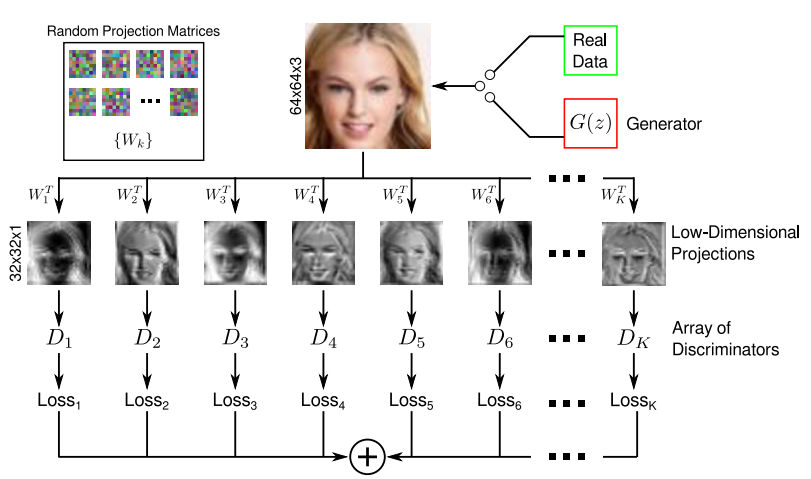 저차원으로 투영된 이미지는 원래 이미지보다 적은 정보를 가지고 있지만 많은 수의 선형 투영을 사용할수록 그들의 전체 공동 분포가 실제 분포와 비슷해지게 되며 G에 의해 생성된 이미지의 분포가 실제 분포와 가까워지도록 장려한다.