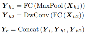 채널 차원을 고주파수 feature Xh1, Xh2, 저주파수 feature Xl로 나눈다.