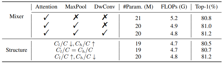 또한 연구진은, 낮은 계층은 종종 더 많은 local 정보를 필요로 하는 반면, 높은 계층은 더 많은 global 정보를 원한다는 것을 발견한다. 이에 영감을 받아 주파수 램프 구조를 설계한다. 특히, 더 낮은 층에서 더 높은 층으로, 점점 더 많은 채널 치수를 저주파 mixer에 공급하고 더 적은 채널 치수를 고주파 mixer에 공급한다. 이 구조는 모든 레이어에 걸쳐 고주파 및 저주파 요소를 상충할 수 있다.