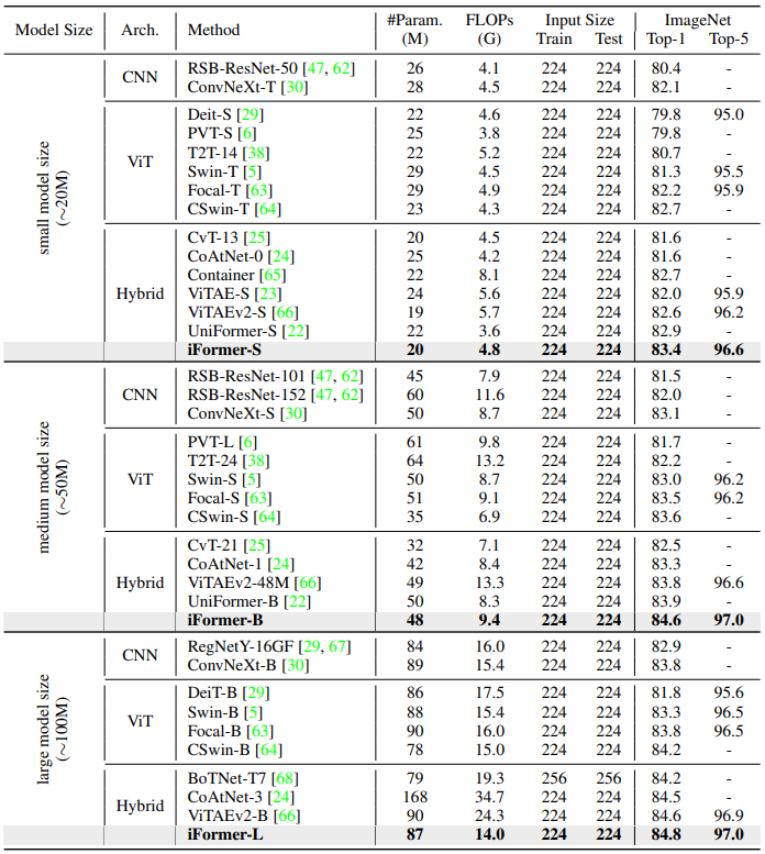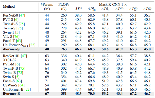 실험 결과는 iFormer가 이미지 분류, 객체 탐지 및 분할을 포함한 여러 비전 작업에서 SOTA ViTs 및 CNN을 능가한다는 것을 보여준다.