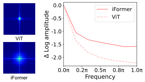 아래의 그림과 같이, ViT는 고주파 신호를 잘 포착하지 못한다. 이는 ViT가 low pass filter(LPF)의 역할을 한다는 것을 보여준다.