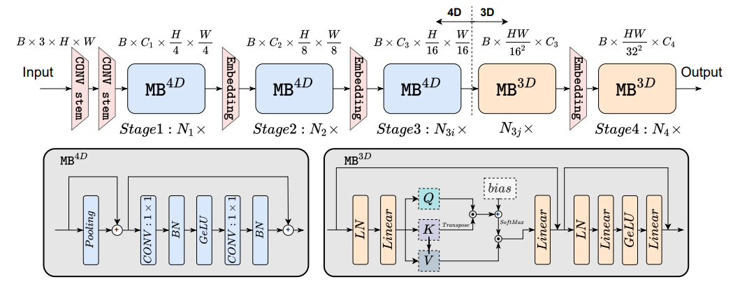 MetaFormer와 같이 4 stage로 이루어져 있다.