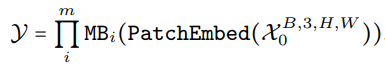 네트워크는 패치임베딩과 MetaFormer 블록의 스택으로 구성된다.
