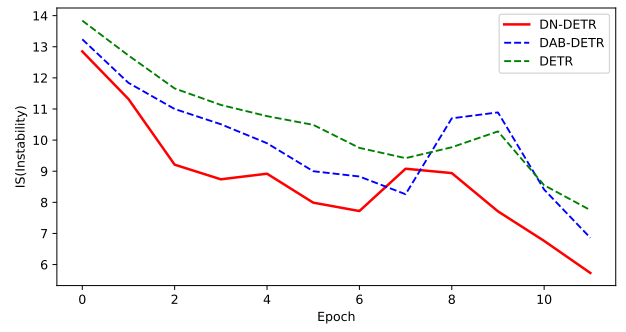 노이즈 제거 훈련은 이분 매칭 작업을 우회하기 때문에, GT와 거의 같은 "노이즈 쿼리"는 "좋은 앵커"로 간주될 수 있다. 따라서 노이즈 제거 훈련은 원래 경계 상자를 예측하는 명확한 최적화 목표를 가지고 있으며, 이는 헝가리안 매칭에 의해 초래되는 모호성을 근본적으로 방지한다.