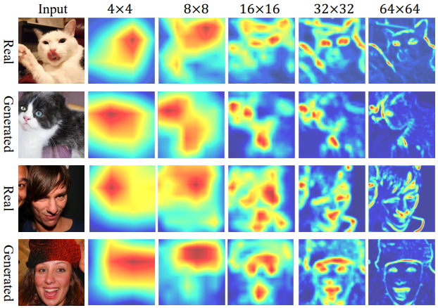 - D가 실제 이미지와 생성된 이미지 모두에 대한 시각적 주의를 학습한다.