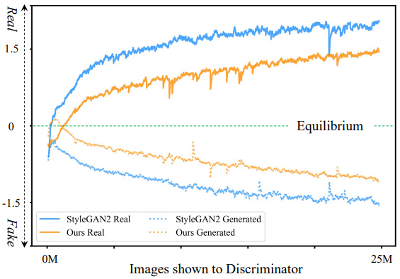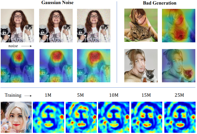 G와 D의 정보 비대칭이 GAN 균형 문제에 일부 기여하고 있다는 것을 알아내고 heatmap과 D의 attention map을 통해 GAN 훈련 평형을 개선하는 EqGAN-SA를 제안했다. 주목할 점은 생성능력 개선뿐만 아니라 styleGAN3의 앨리어싱 제거 과정이 전혀 없는데도 translation equivariance가 개선되었다는 것이다.
