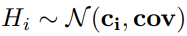 (c는 평균=중심 지점, cov는 공분산)