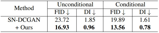 EqGAN-SA는 다음과 그림과 같이 GAN 게임을 평형하게 만들며 이로 인해 합성 성능이 향상된다.