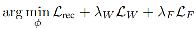 (첫 번째 항은 이 논문에서 제안한 gaussian prior이다. W+ 잠재 공간이 가우시안 분포를 따르도록 한다. 이는 W+ 공간에서 매핑 네트워크의 역할을 대신하며, 반전 능력과 생성 품질을 향상한다.)
