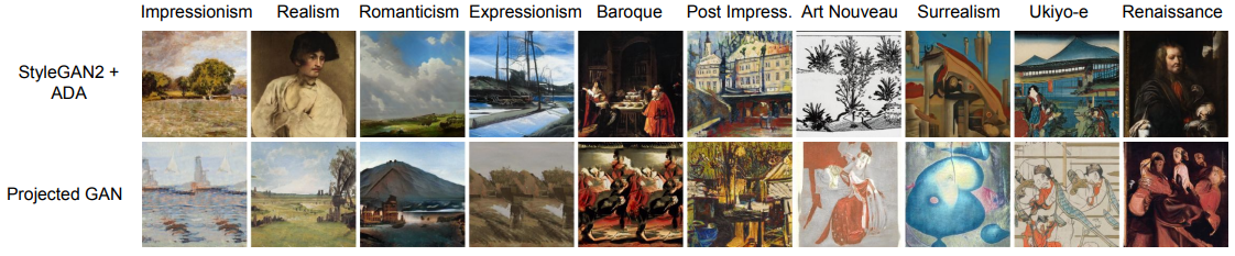 (언급은 되어있지 않지만 정량적 평가에서 styleGAN2에 밀리는 것과 생성 이미지의 중복 현상을 보았을 때 Projected GAN의 백본으로 FastGAN을 사용한듯 하다.)