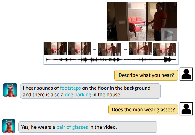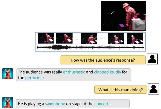 Video Q-former, Audio Q-former를 통해 비디오의 시청각 콘텐츠를 이해하는 multi-modal framework인 Video-LLaMA 제안.